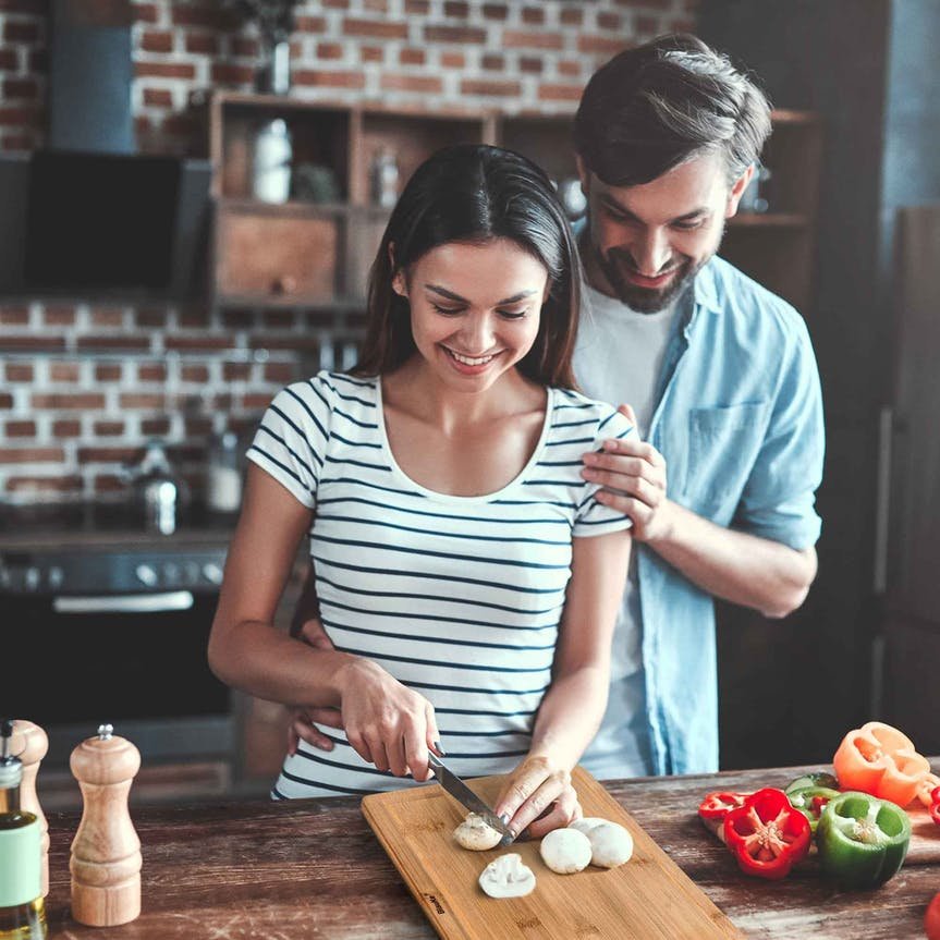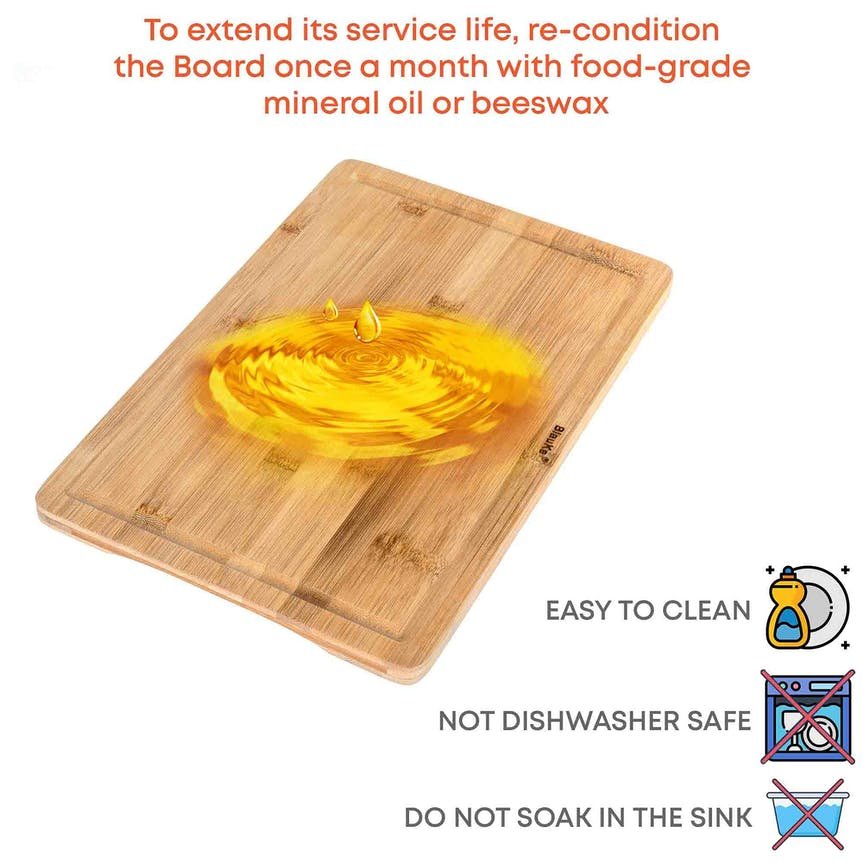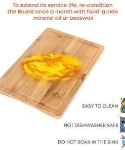 Du kan använda denna 38x25cm träskärbräda på båda sidor för att skära all mat (frukt, grönsaker, kött, bröd etc).