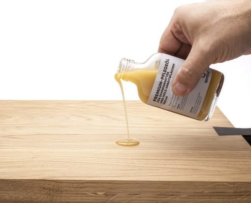 Denna Premium Träolja är inte bara lämplig för underhåll, utan också för den första förseglingen av obehandlade träskivor och deras slutliga beläggning. Den naturliga träoljan garanterar ett tillförlitligt bordsskydd.